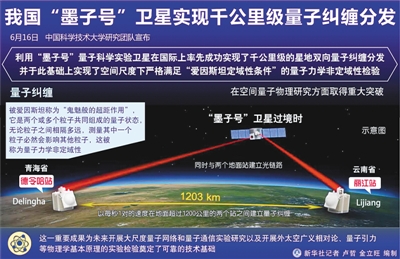 2016年8月16日,中國成功發(fā)射了世界首顆量子科學(xué)實驗衛(wèi)星“墨子號”,率先在國際上實現(xiàn)高速星地量子通信。“墨子號”的發(fā)射,使得中國率先實現(xiàn)了“千公里級”的星地雙向量子糾纏分發(fā),打破了此前國際上保持多年的“百公里級”紀錄。這也為連接地面光纖量子通信網(wǎng)絡(luò)、構(gòu)建一個天地一體化的量子保密通信與科學(xué)實驗體系打下基礎(chǔ)。