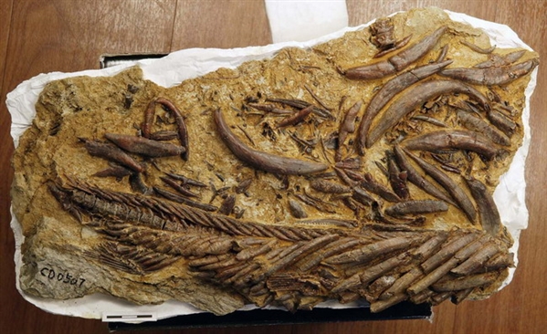 大概是十年以前,美國洛杉磯自然歷史博物館的王曉鳴博士和國內(nèi)的幾位古生物學專家,在柴達木盆地中部偏西的鴨湖背斜軸部的上新統(tǒng)獅子溝組地層中,采集到了許多粗壯的魚類零散骨骼化石。起初誰也不知道那是什么,差一點王曉鳴就把它們當成紀念品帶回美國。好在,后來又找到了幾塊相對完整的化石標本。