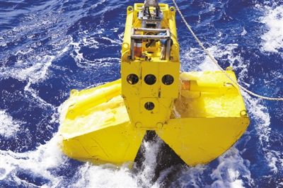 左圖 電視抓斗抓取深海地質(zhì)樣品后出水(11月30日攝)。