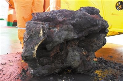 下圖 電視抓斗抓取的深海地質(zhì)樣品(11月30日攝)。新華社記者 攝